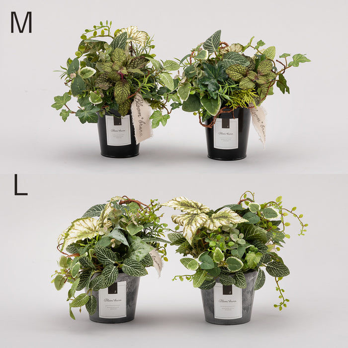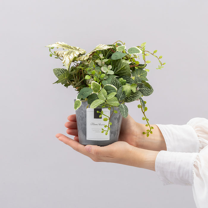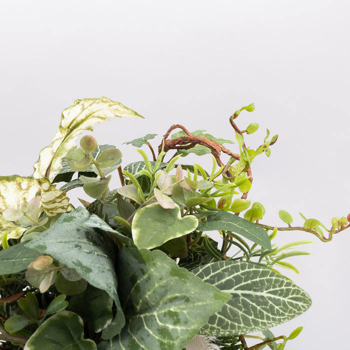 ミックスされたグリーンの重なりと、シャープな枝のラインが印象的なアーティフィシャルグリーン。ナチュラルすぎず、モダンな印象で空間をセンスよく彩ります。