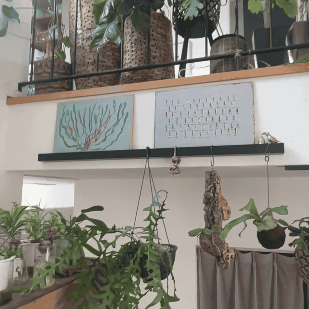 壁に付ける棚やバー、そして壁を飾るアートグリーン。