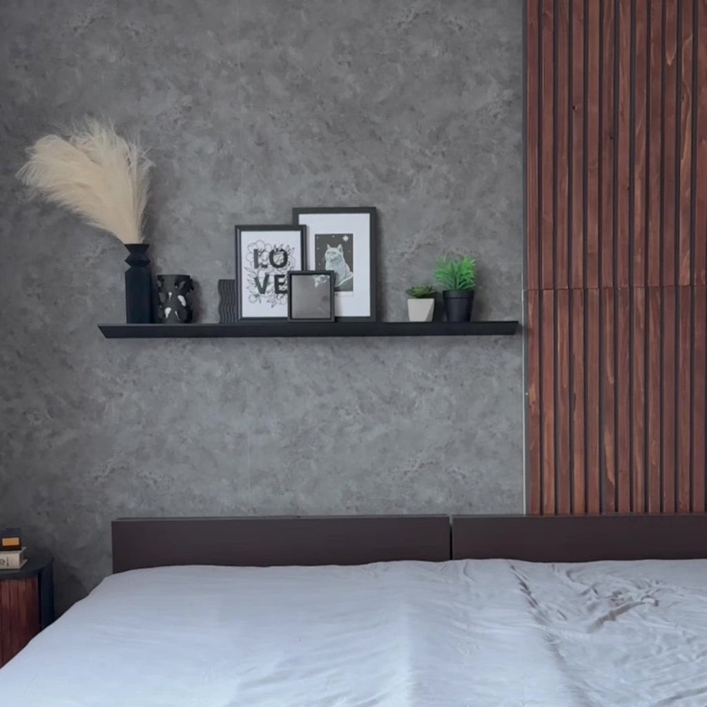 別ページで販売中のウォールシェルフとウォールバーの組み合わせ(それぞれブラック/W900)
